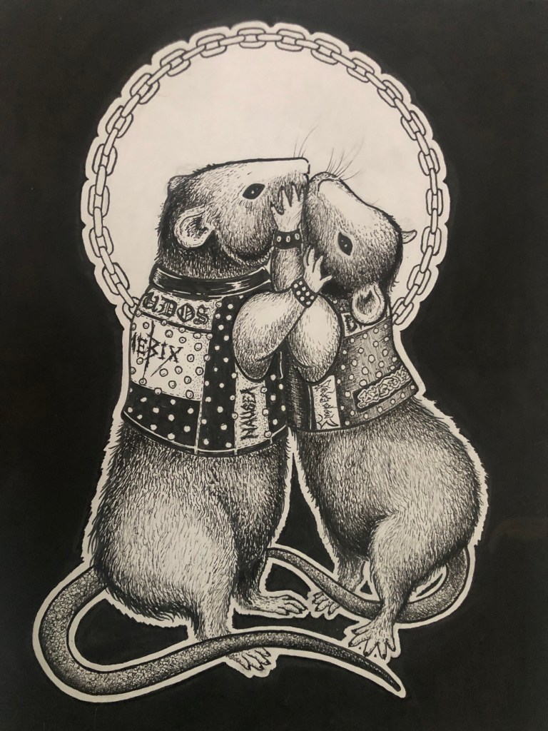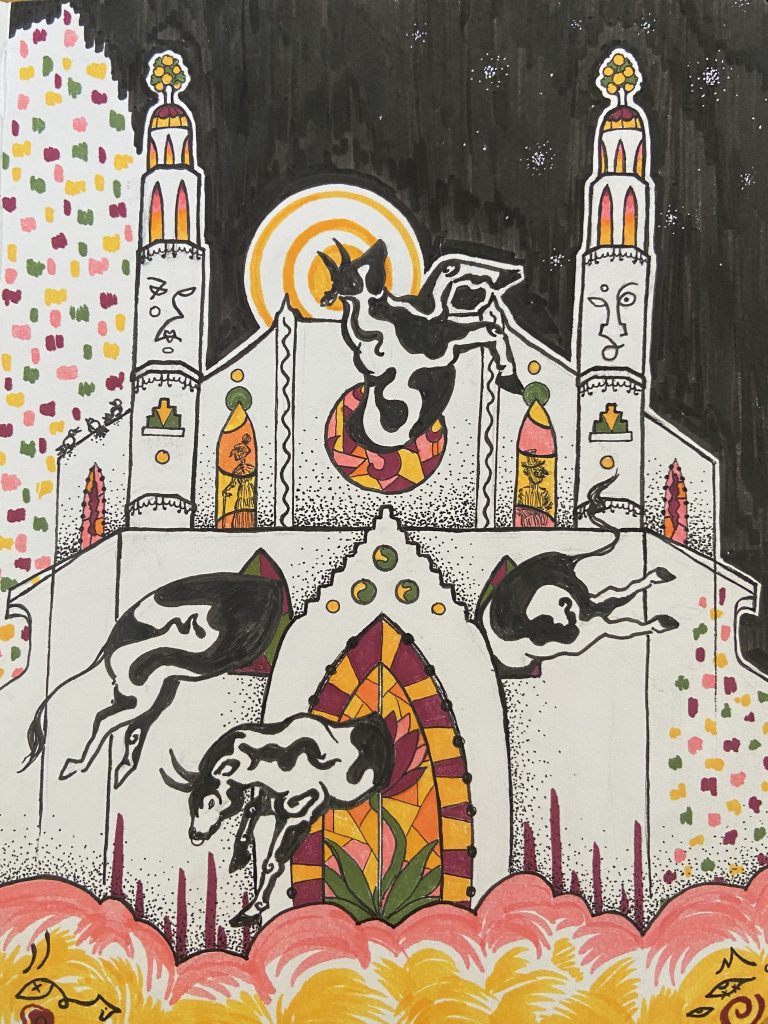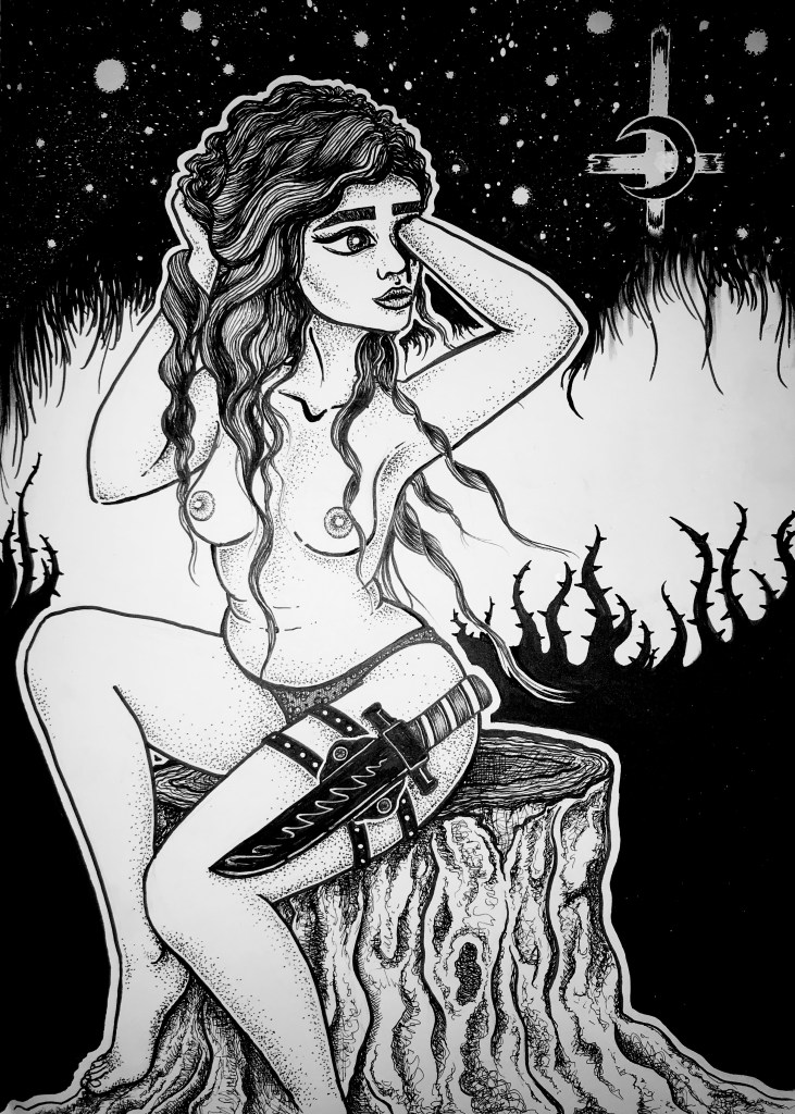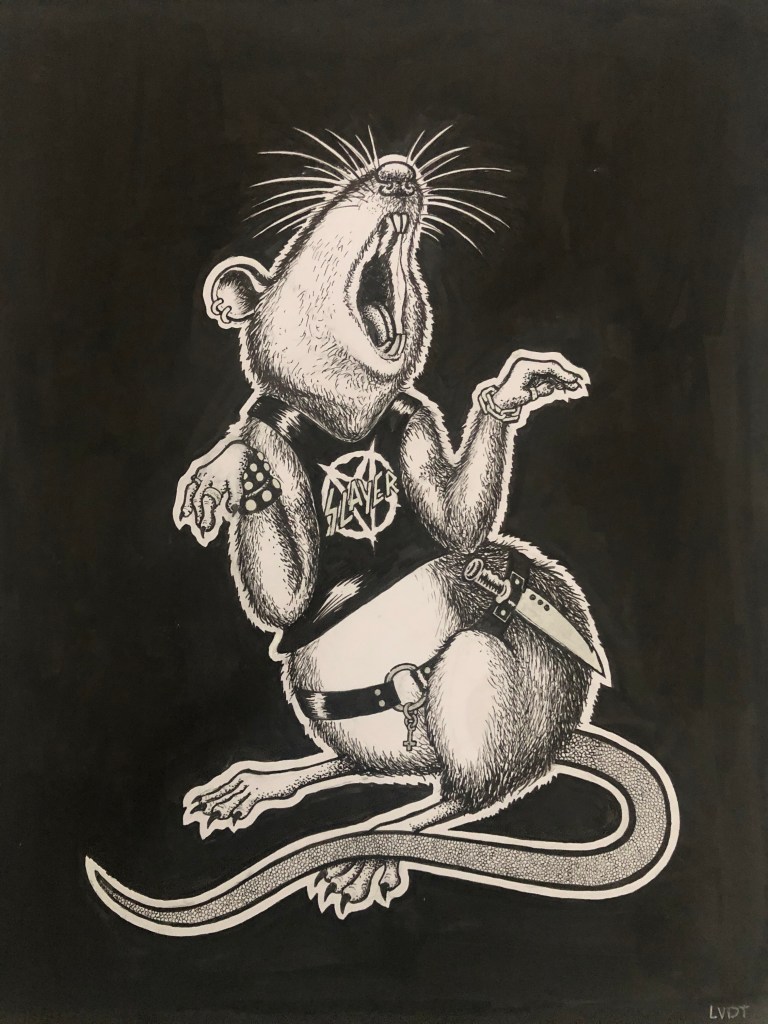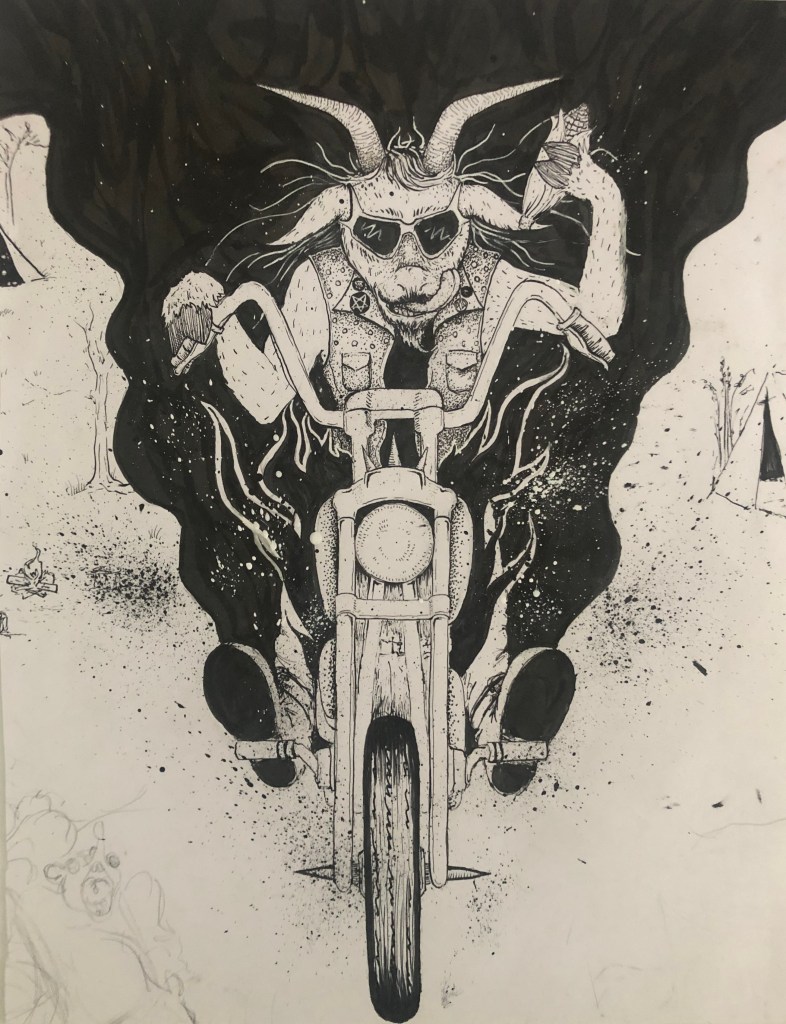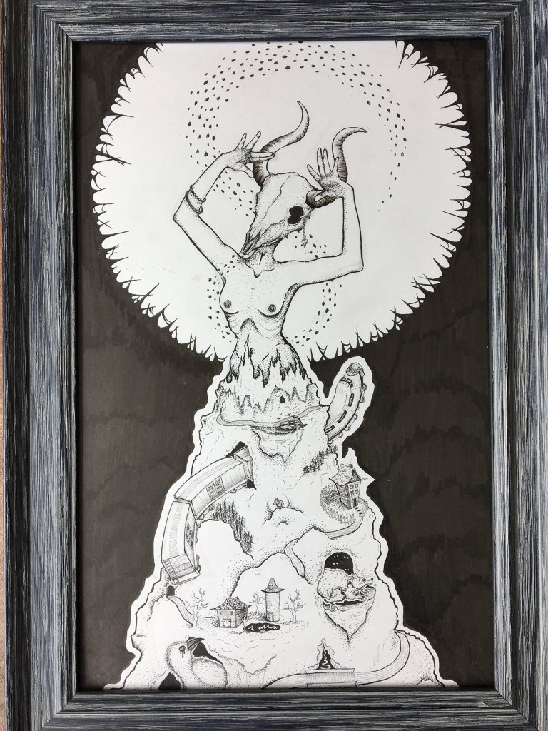 I use pens, markers, ink, watercolor, and colored pencils in my drawings.